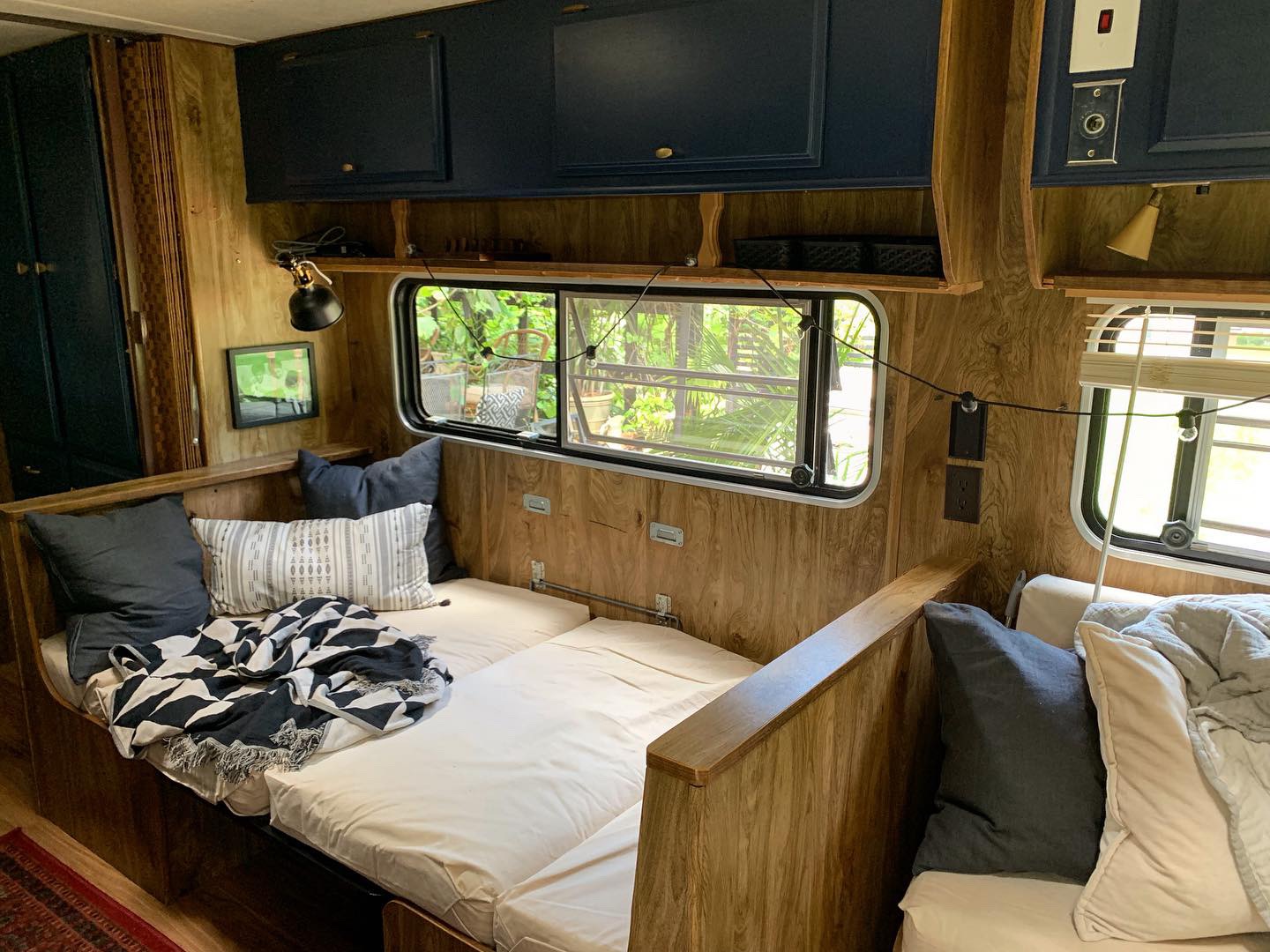 I am the type of renovator that works in stages. I'm extremely visual and sometimes cannot pull an entire idea together until I see it and live in it for a while (it includes a lot of staring). Maybe something doesn't feel finished and it takes you a while to figure out why (I'll show you a major finish I did that changed the entire camper. It took me a while to stare at the camper and realize what needed to change). I honestly will sometimes just stand in a store and look at textiles, hardware, decor, up against pictures on my phone of the room I'm working with. It has helped me make so many good decisions, rather than the pain of buying and returning.